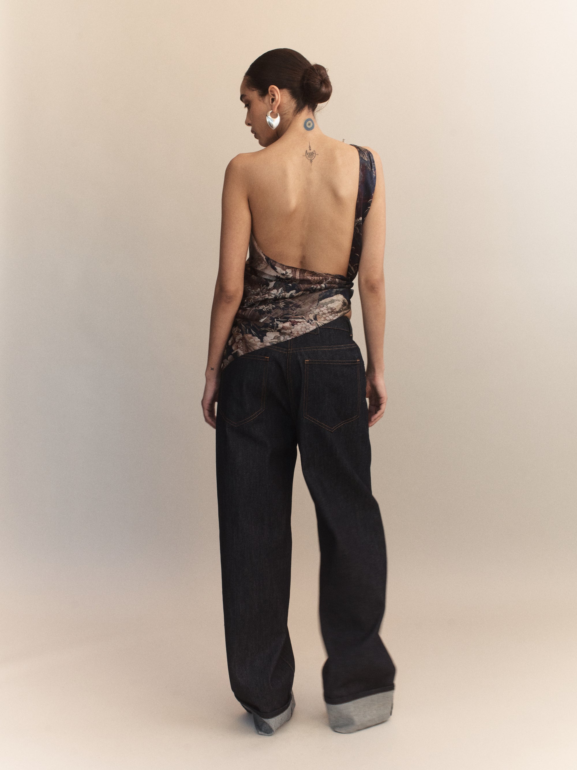Dione Deadstock Raw Denim Barrel Leg Fold Up Jeans