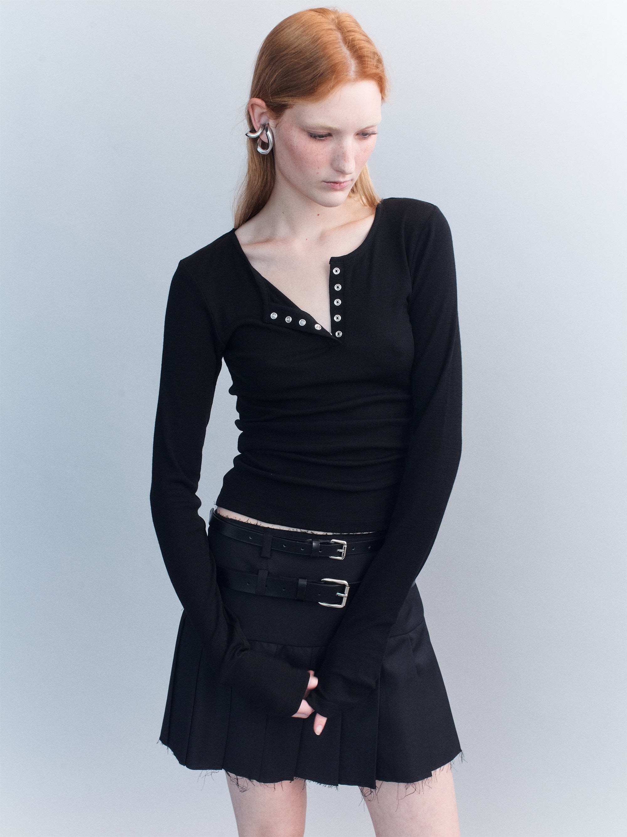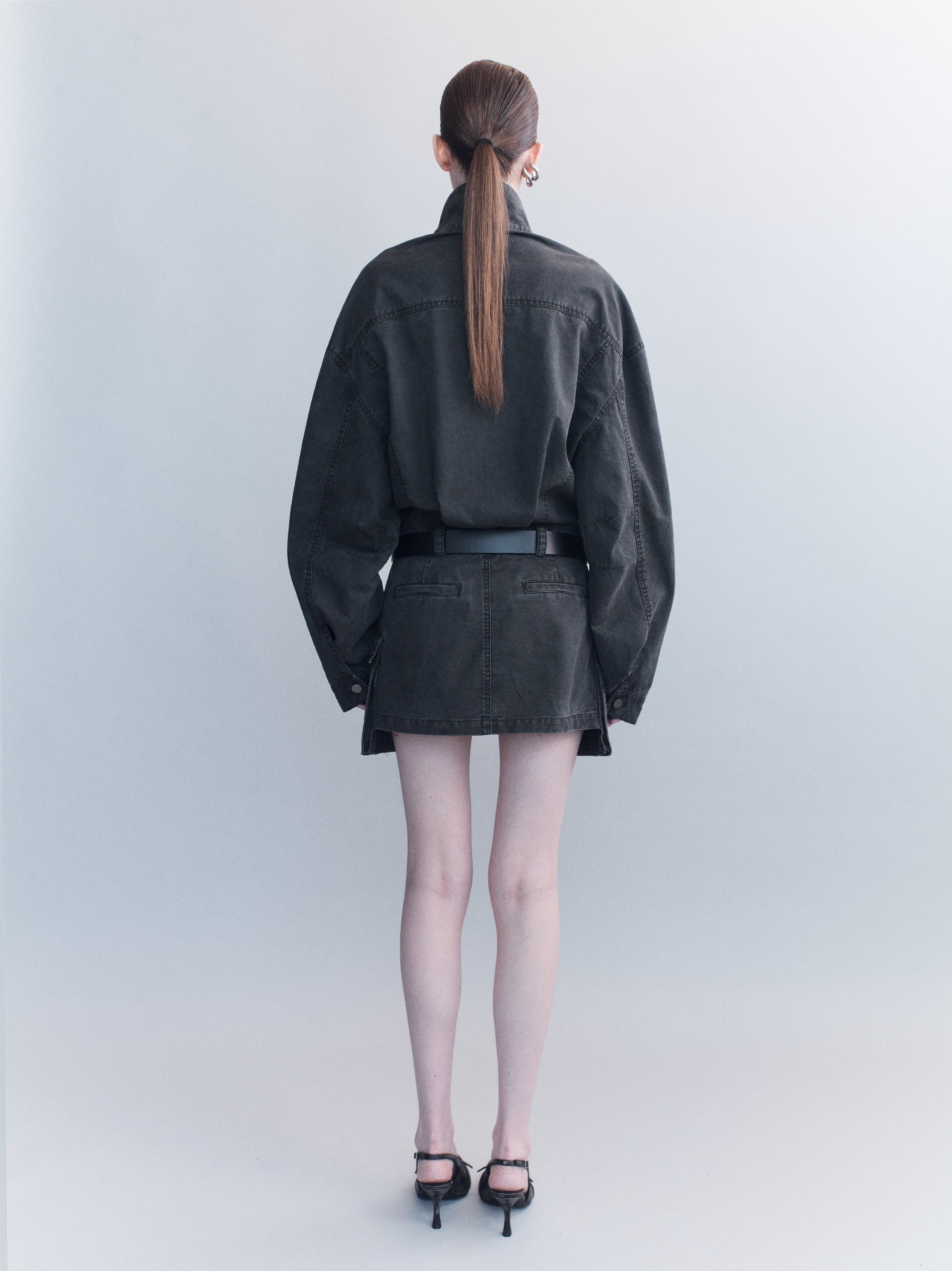 Hilda Double Belted Raw Edge Wool Mini Skirt