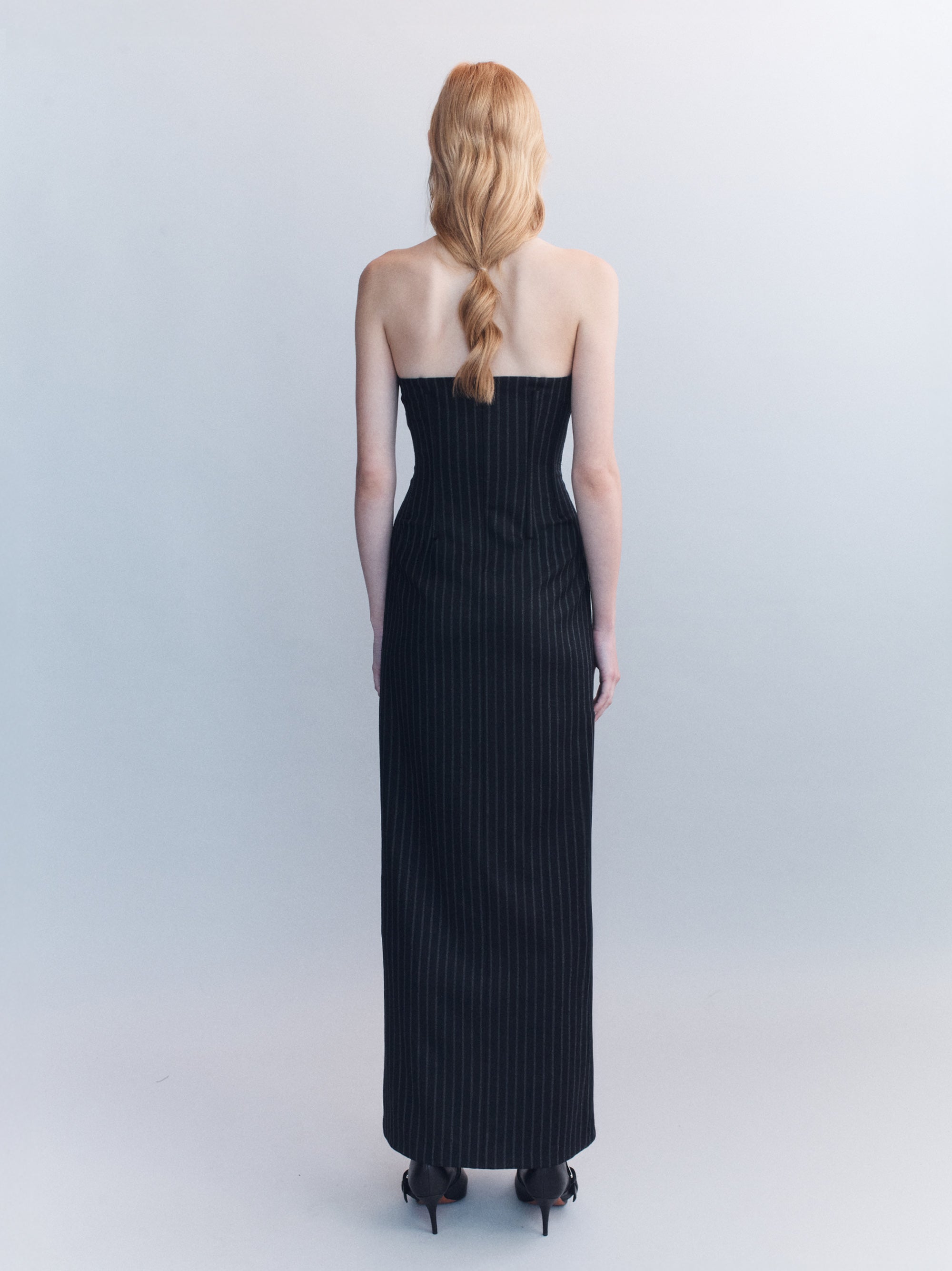 Solveig Chalkstripe Wool Bustier Dress