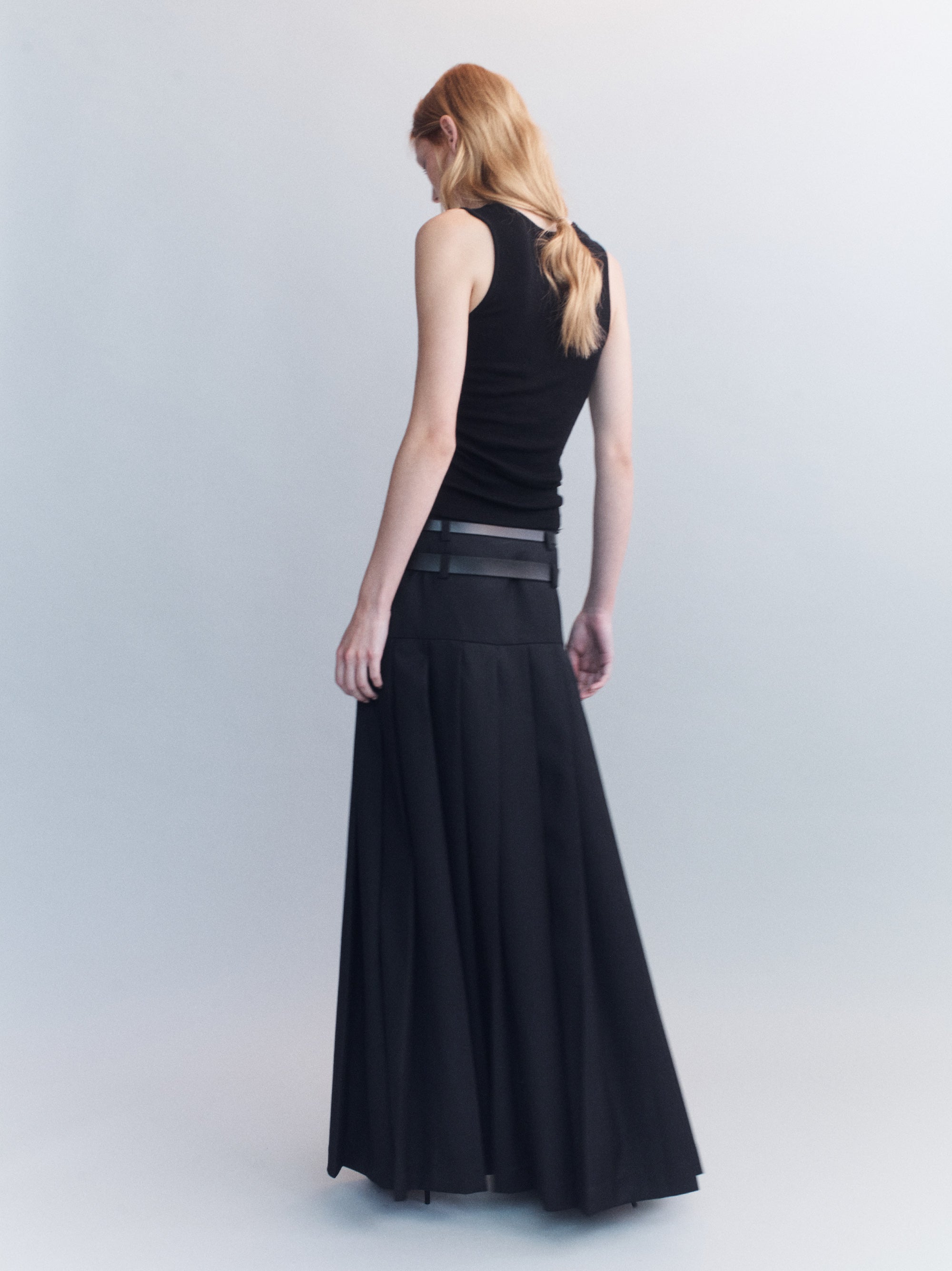 Hedi Double Belted Raw Edge Wool Maxi Skirt