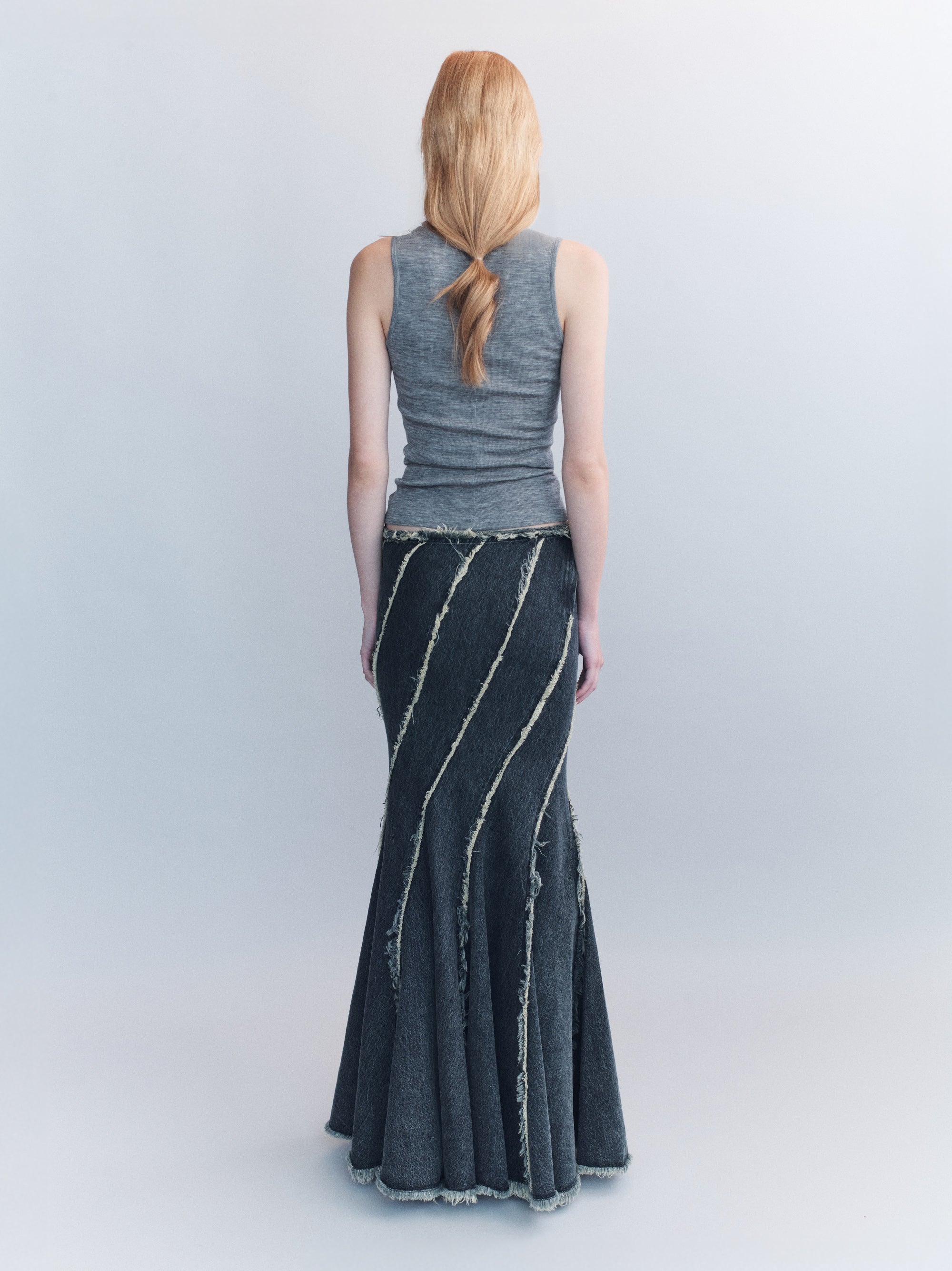 Helix Frayed Panelled Denim Skirt