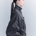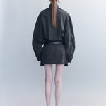 Cut from sturdy cotton drill, the Gunther Cargo Mini Dress balances utilitarian detailing with sculptural form. It features a high funnel neckline, front flap pockets, and a belted waist that shapes the oversized silhouette into a structured mini length.