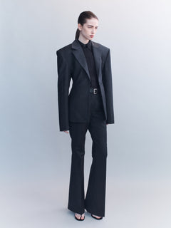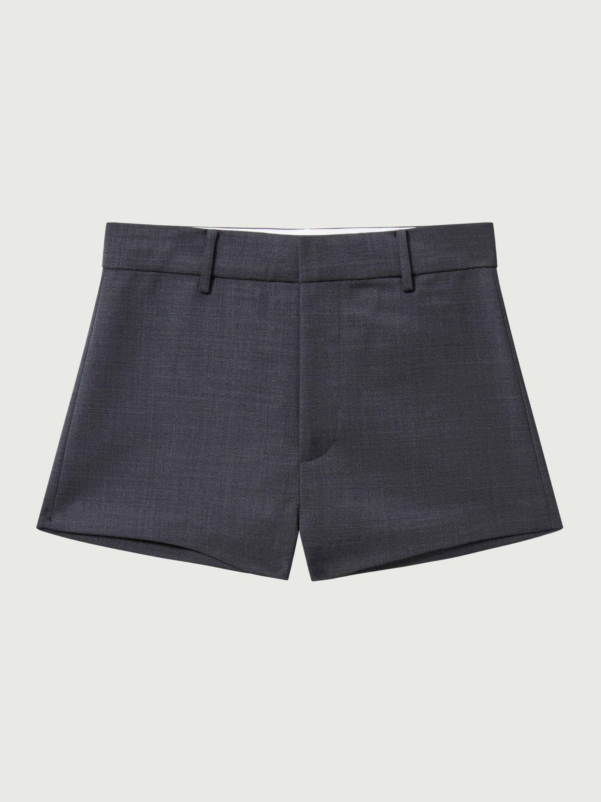 The Elina Scuba Wool Short features a tailored mid-waist fit and a concealed zip closure, offering a streamlined silhouette.
