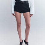 The Elina Scuba Wool Shorts features a tailored mid-waist fit and a concealed zip closure, offering a streamlined silhouette.