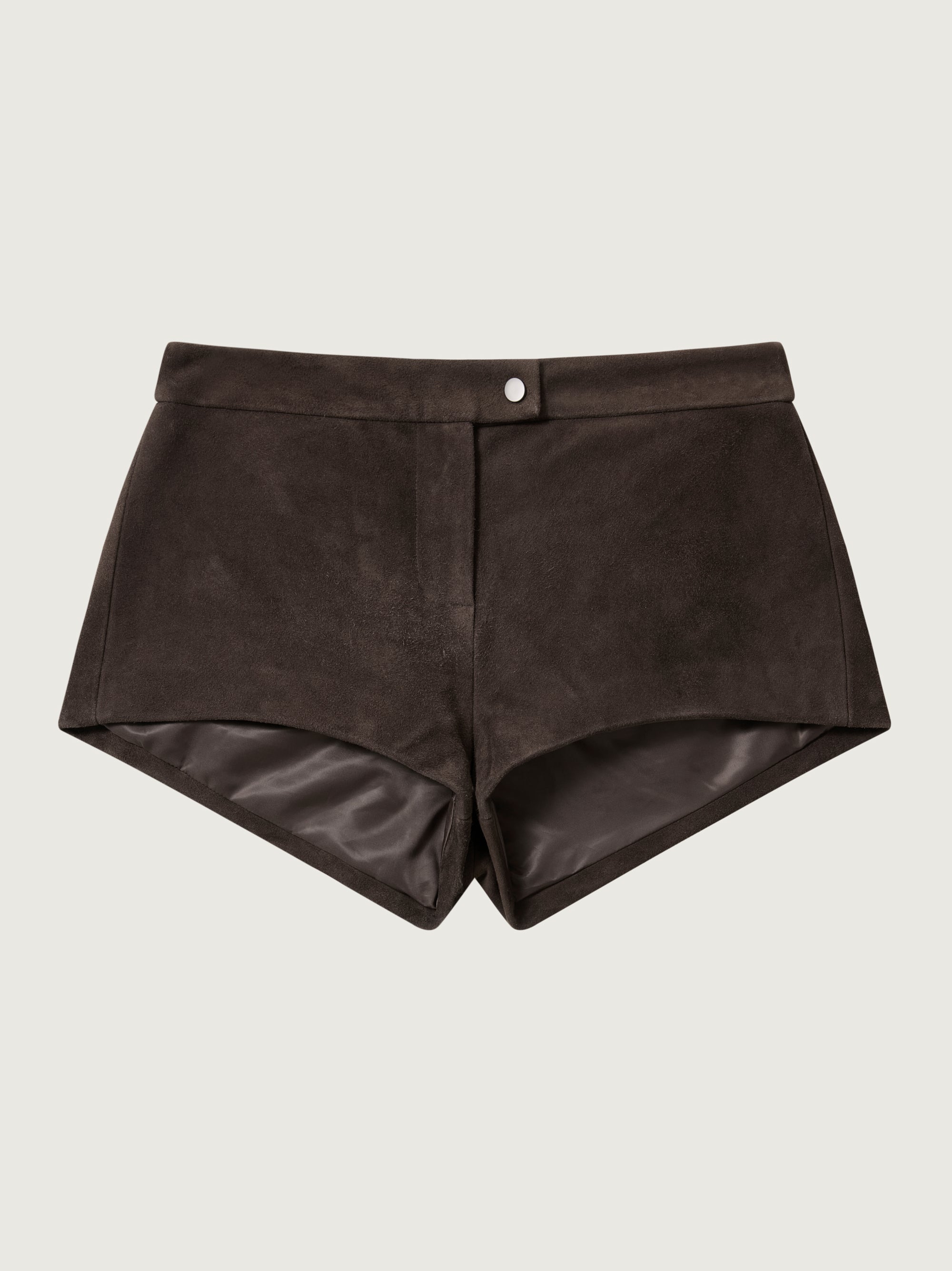 The Lena Suede Mini Shorts is tailored in supple sheepskin suede, cut to a clean mini length. Its pared-back silhouette is designed to complement the Anton Suede Bomber or stand alone as a sharp, minimal piece in the wardrobe.