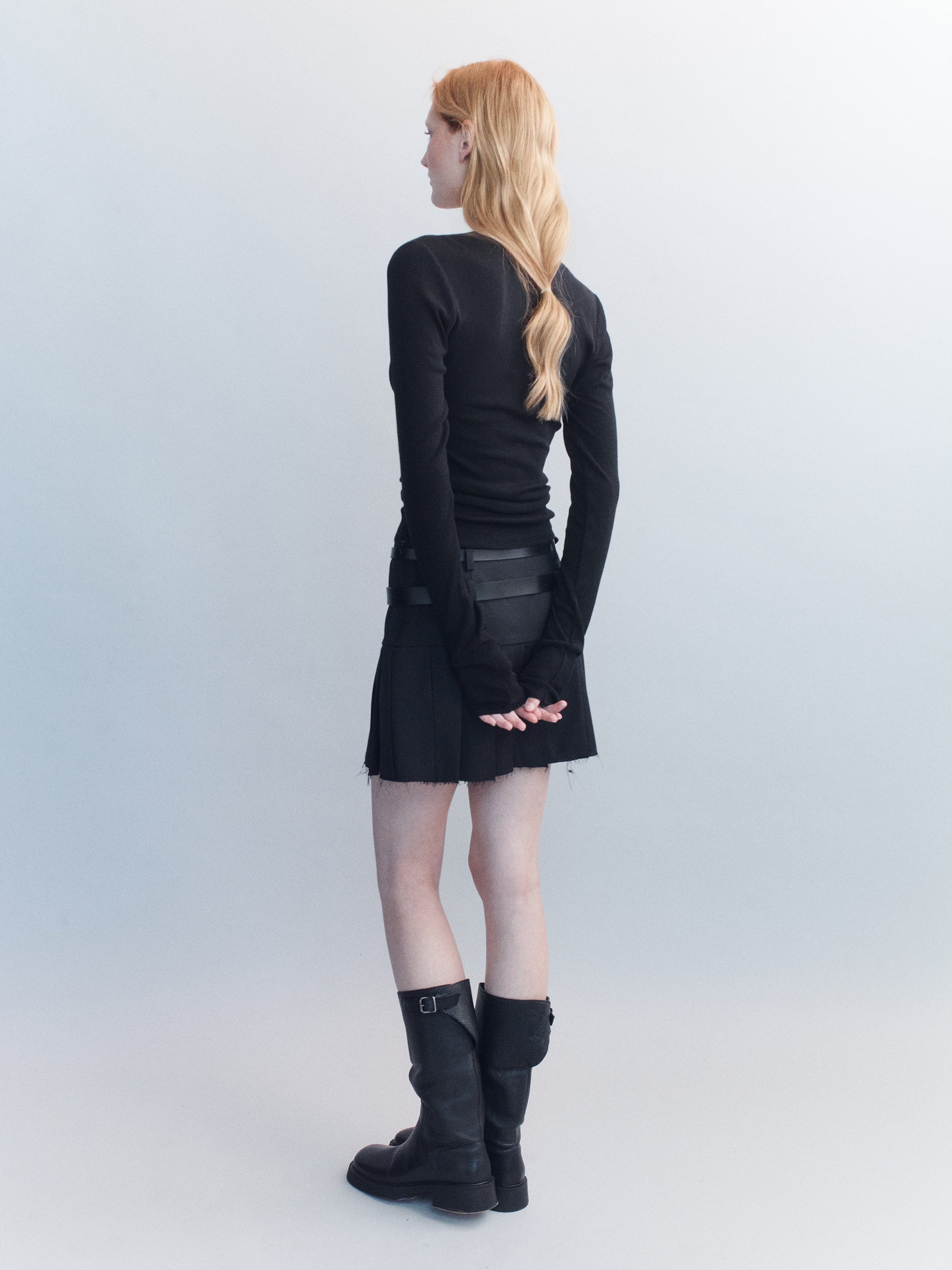 The Henrik Top is crafted from superfine merino, offering a slim fit with natural stretch and breathability. A deep henley neckline punctuated by tonal press-studs lends edge to its otherwise minimal silhouette.