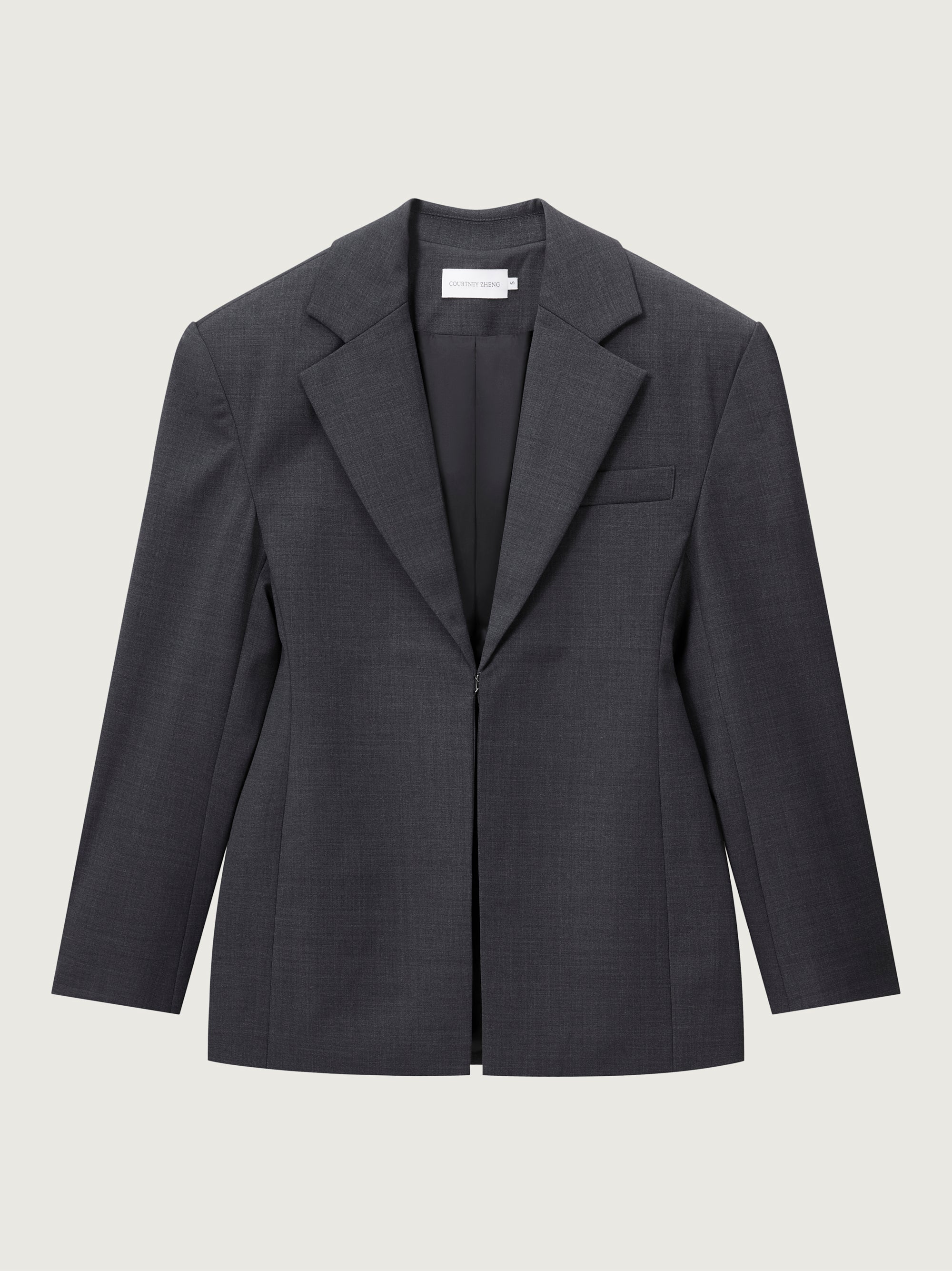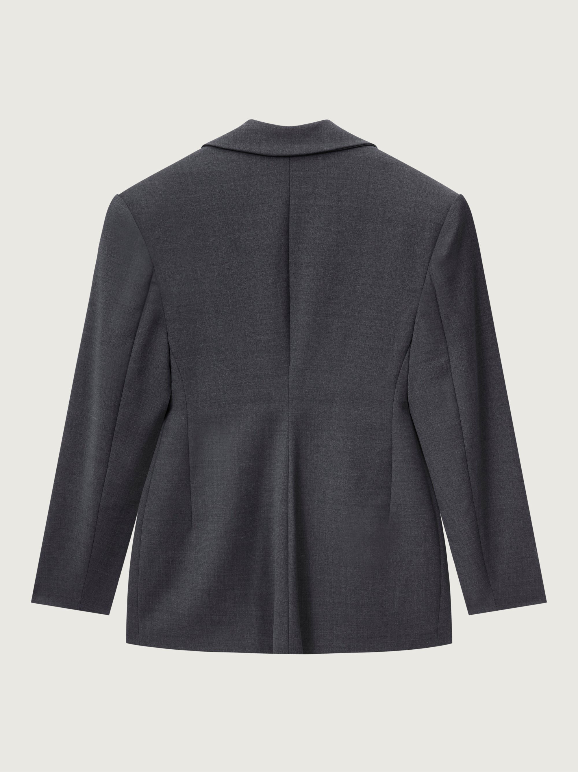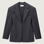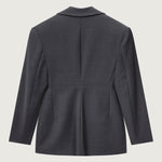 The Milena Scuba Wool Blazer features sharp shoulders, a fitted silhouette, and clean hook and eye closure.