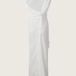 Constructed from premium silk georgette, the Sorens Silk Georgette Off Shoulder Gown features a characteristic sculptural off-shoulder neckline and a refined twist detail that provides architectural interest to the bodice. Its panelled construction creates a graceful line that contours the body with soft precision, extending into a maxi-length silhouette.