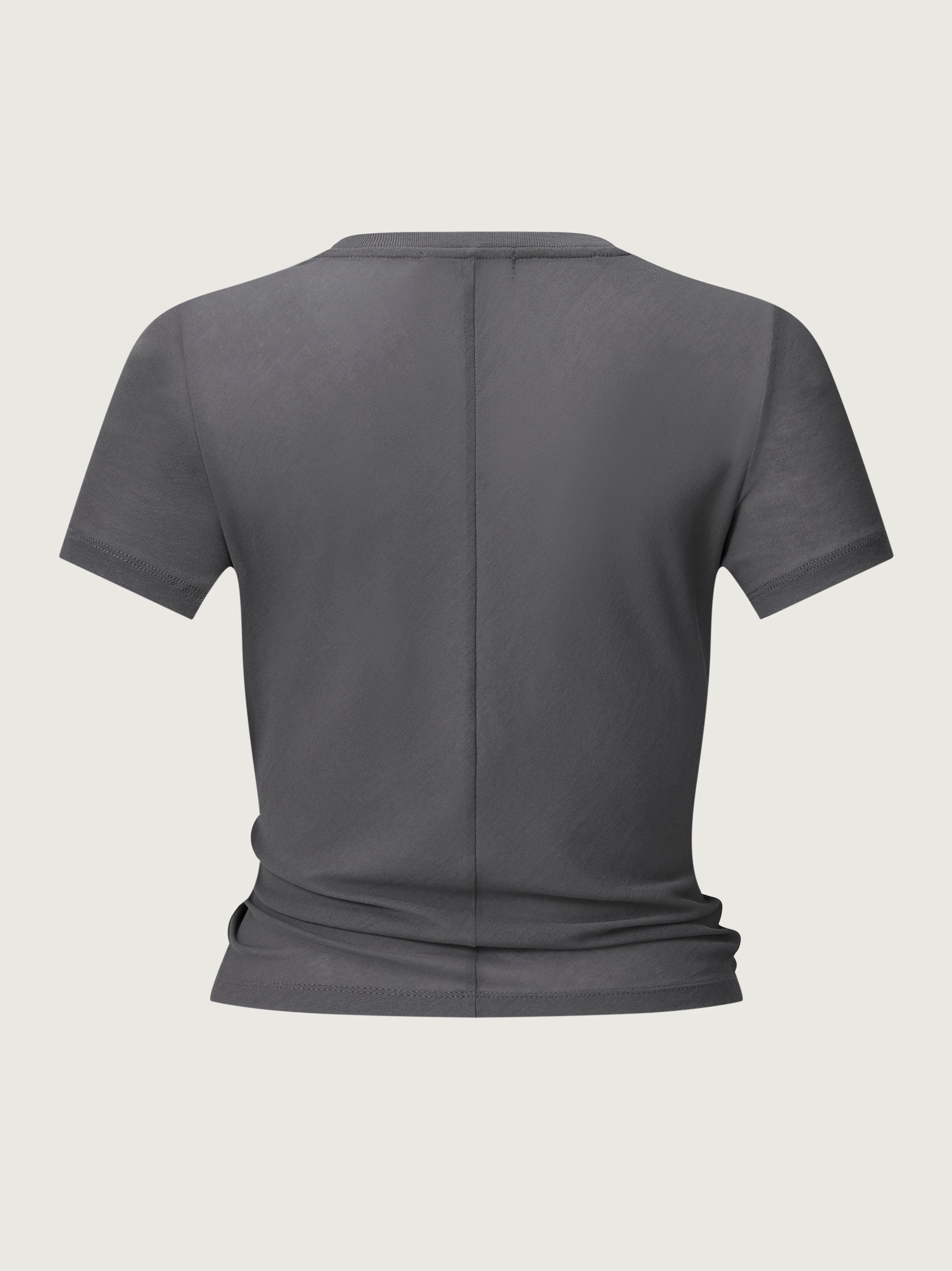 The Supima Tuck Tee is cut from lightweight Supima cotton jersey, offering a softer, more delicate drape against the body. Defined by the twisted tuck detail at the waist, it balances sculptural form with an airy, pared-back finish.