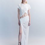 The Supima Tuck Tee is cut from lightweight Supima cotton jersey, offering a softer, more delicate drape against the body. Defined by the twisted tuck detail at the waist, it balances sculptural form with an airy, pared-back finish.